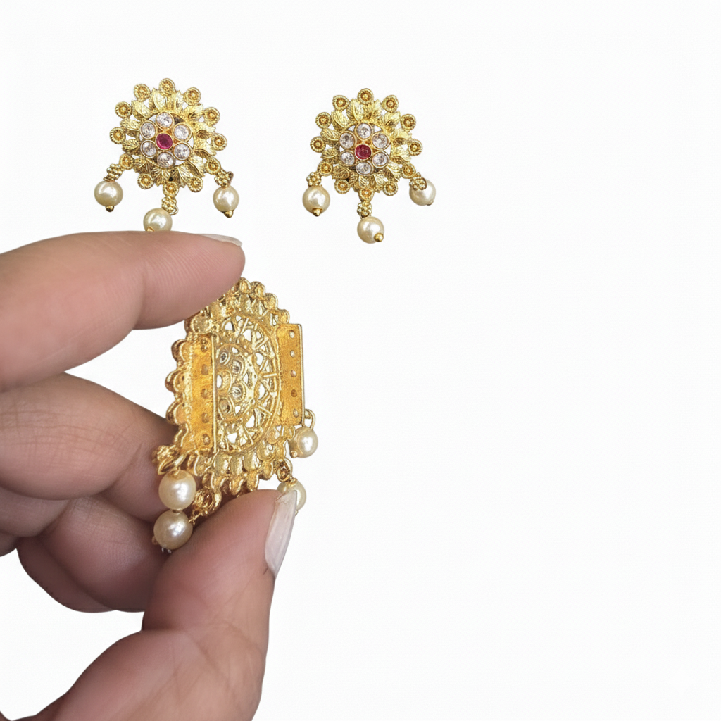 Quantity <\/strong>- 1 pendent with pair of earrings.<\/li>\r\n\t